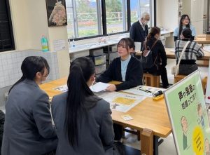 また、それぞれのブースでは説明を担当した学生と話が弾み、色々なことをお話されている様子でした。